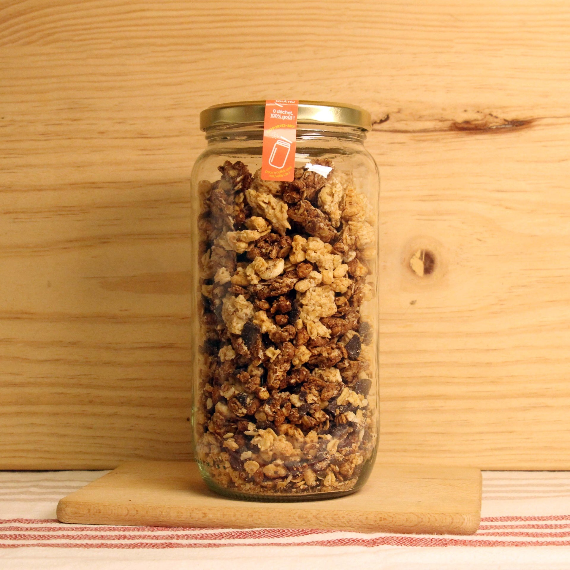 Ingrédients :Flocons d’avoine(blé, seigle, orge),malt d’orge, cacao poudre, sel), sucre, huile de tournesol, noix de coco, farine (blé, seigle), noisettes grillées, amandes, poudre cacao, germes de blé, miel, sel, poudre de chocolat (sucre, poudre cacao, beurre de cacao, arôme vanilline).